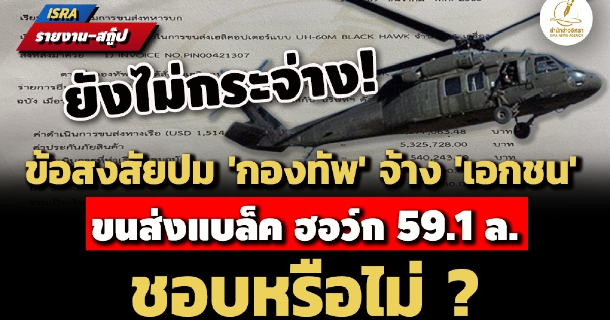 ตามติดปมกองทัพจัดซื้อแบล็ค ฮอว์ก 4 เครื่อง 4.2 พันล้าน ปี 2564 ข้อสงสัยกรณีจ้างเอกชนขนส่งจากท่าเรือในสหรัฐ 59.1 ล. ชอบหรือไม่ ใครรับผิดชอบ รอกระจ่าง ?