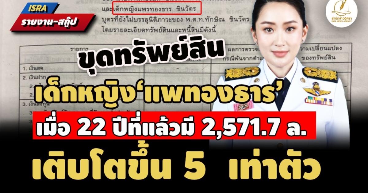 โฟกัสเฉพาะ เด็กหญิงแพทองธาร (บุตรที่ยังไม่บรรลุนิติภาวะ) ในช่วงปี 2545-2549 มีทรัพย์สิน (ตามที่บิดาแจ้งต่อ ป.ป.ช.) อยู่ที่ 2,571,762,319 - 3,246,341,370 บาท หรือประมาณ 2,571.7 - 3,246.3 ล้านบาท ไม่ต้องนับย้อนไปถึงช่วงนายทักษิณดำรงตำแหน่ง รองนายกฯในรัฐบาล พล.อ.ชวลิต ยงใจยุทร ยื่นต่อ ป.ป.ช. วันที่ 7 พฤศจิกายน 2540 แจ้งว่าบุตรที่ยังไม่บรรลุนิติภาวะ 3 คน (ขณะนั้น) นายพานทองแท้ (โอ๊ค) นางสาวพิณทองทา (เอม) และเด็กหญิงแพทองธาร (อุ๊งอิ๊ง) ชินวัตร มีทรัพย์สินรวมกัน 3,896,083,935 บาท