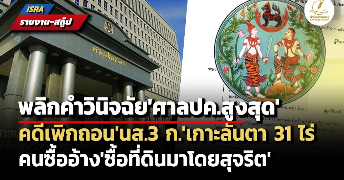 เมื่อ ศาลปกครองสูงสุด ได้มีคำพิพากษาในคดีหมายเลขดำที่ อ.1078/2559 คดีหมายเลขแดงที่ อ.222/2567 ซึ่งเป็นคดีที่ 'ผู้ฟ้องคดี 5 ราย' ยื่นฟ้องกรมที่ดินกับพวกรวม 3 ราย (กรมที่ดิน ,อธิบดีกรมที่ดิน และรองปลัดกระทรวงมหาดไทย ปฏิบัติหน้าที่หัวหน้ากลุ่มภารกิจด้านกิจการความมั่นคงภายใน)