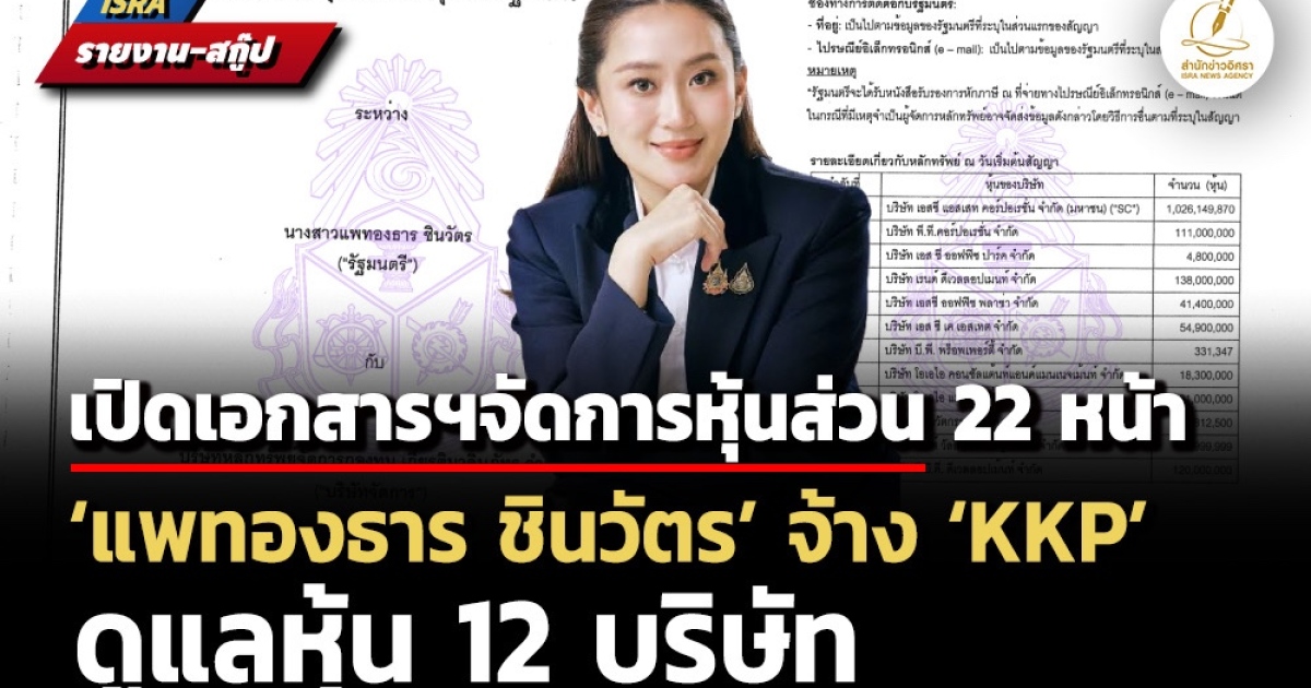 - เฉลยแล้ว!‘แพทองธาร’โอนหุ้น 12 บริษัท 5,785 ล. ให้ บลจ.เกียรตินาคินภัทร - แลนด์ฯ ดูแล
