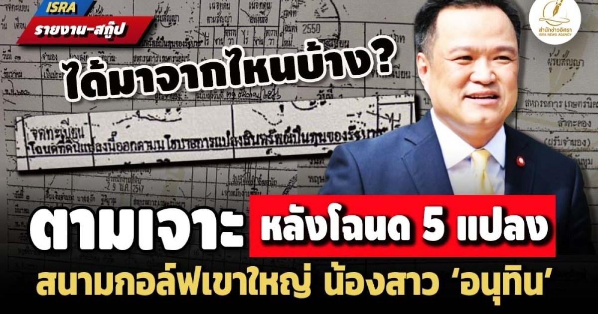 ISRA INVESTIGATIVE! ได้มาจากไหนบ้าง ? เปิดสารบัญฯโฉนด 5 /24 แปลง สนามกอล์ฟ แรนโชชาญวีร์ น้องสาว‘อนุทิน ชาญวีรกูล’ อย่างน้อย 3 แปลงออกตามนโยบายแปลงสินทรัพย์เป็นทุน จำนองสหกรณ์นิคมฯลำตะคอง ขายให้น้อง‘เสี่ยหนู’ช่วง 2550-2552 ก่อนโอนเป็นสินทรัพย์ บ.กอล์ฟเขาใหญ่ ปลายปี 2560