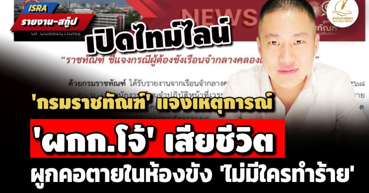 ระบุว่า ด้วยกรมราชทัณฑ์ ได้รับรายงานจากเรือนจำกลางคลองเปรมว่า เมื่อวันศุกร์ที่ 7 มีนาคม 2568 เวลาประมาณ 20.50 น. เจ้าพนักงานเรือนจำปฏิบัฏิบัติหน้าที่เวรพยาบาลได้แจ้งเหตุผู้ต้องขังเสียชีวิต 1 ราย ทราบชื่อ ข.ช.ธิติสรรค์หรือโจ้ อุทธนผล คดีความผิดต่อตำแหน่งหน้าที่ราชการ ความผิดต่อชีวิต ความผิดต่อเสรีภาพ ความผิดต่อพระราชบัญญัติประกอบรัฐธธรรมนูญว่าด้วยการป้องกันและปราบปรามการทุจริตฯ ศาลอาญาคดีทุจริตและประพฤติมิชอบกลาง พิพากษาให้จำคุกตลอดชีวิต นับตั้งแต่วันที่ 27 สิงหาคม 2564 ตามหมายจำคุกระหว่างอุทธรณ์ฎีกา ต้องจำมาแล้วในเรือนจำ 3 ปี 6 เดือน 13 วัน โดยรับตัวผู้ต้องขังเข้าคุมขัง เมื่อวันที่ 3 กันยายน 2564 ปัจจุบันถูกคุมขังที่ห้องแยกการควบคุม 5
