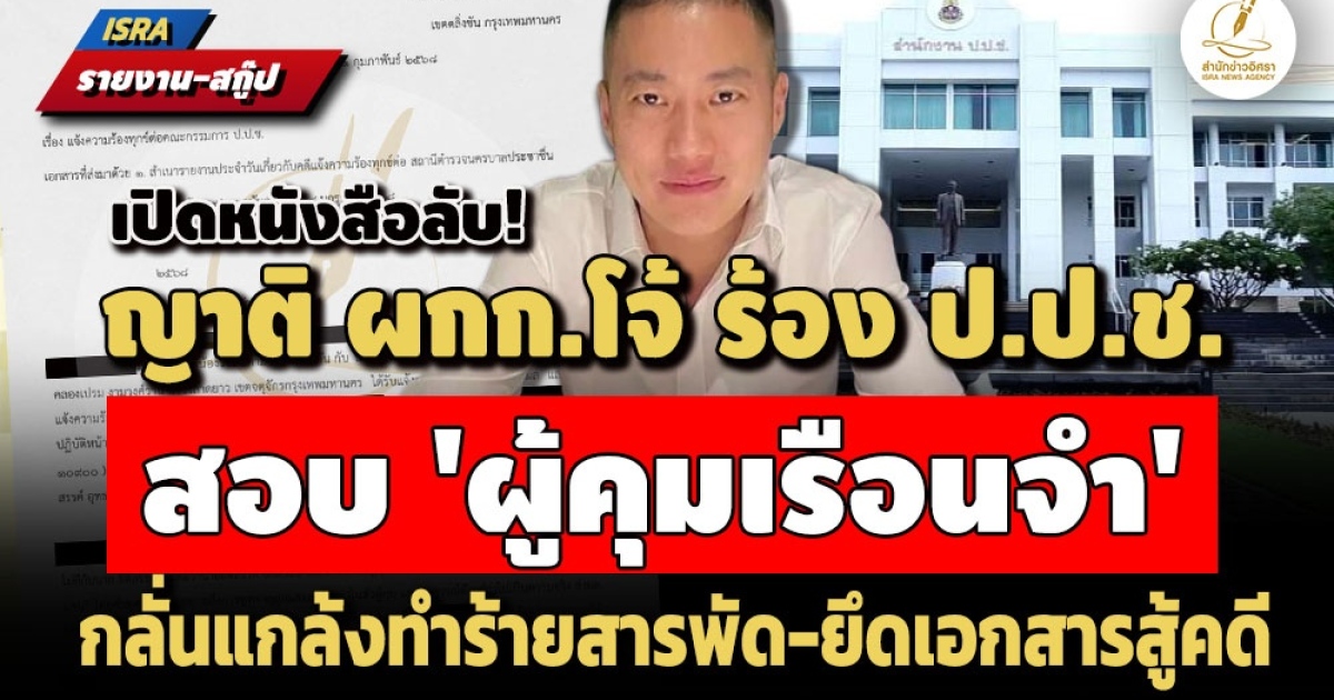 ข้าพเจ้านางสาว ธ. มีฐานะเป็นพี่น้องร่วมบิดามารดาเดียวกัน กับ นายธิติสรรค์ อุทธนผล ที่อยู่ 33/2 เรือนจำกลางคลองเปรม งามวงศ์วาน แขวงลาดยาว เขตจตุจักรกรุงเทพมหานคร ได้รับแจ้งจาก นายธิติสรรค์ อุทธนผล และให้มาแจ้งความร้องทุกข์ต่อคณะกรรมการ ป.ป.ช. กับ นาย XX เจ้าหน้าที่ควบคุม ตำแหน่ง XXX ปฏิบัติหน้าที่ ณ เรือนจำกลางคลองเปรม ซึ่งมีการกระทำอันส่งผลกระทบต่อสวัสดิภาพ ความปลอดภัย และสิทธิขั้นพื้นฐานของนักโทษ นายธิติสรรค์ อุทธนผล อย่างร้ายแรง