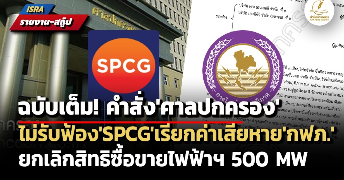 จากกรณีที่ ศาลปกครองกลาง มีคำสั่งในคดีหมายเลขดำที่ 287/2568 คดีหมายเลขแดงที่ 628/2568 ซึ่งเป็นคดีที่ บริษัท เซท เอนเนอยี จำกัด (ผู้ฟ้องคดีที่ 1) และ บริษัท เอสพีซีจี จำกัด (มหาชน) หรือ SPCG (ผู้ฟ้องคดีที่ 2) ยื่นฟ้อง การไฟฟ้าส่วนภูมิภาค (กฟภ.) (ผู้ถูกฟ้องคดี) ต่อศาลปกครอง เรียกร้องค่าเสียหายจาก กฟภ. เป็นเงิน 3,709.30 ล้านบาท
