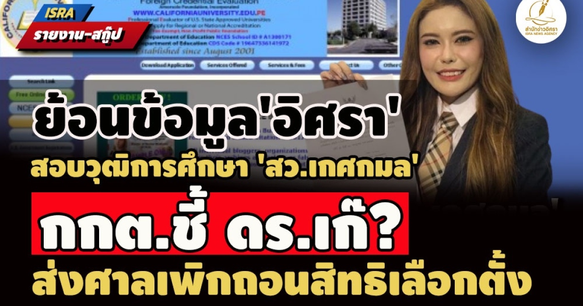 ก่อนหน้านี้ สำนักข่าวอิศรา (www.isranews.org) เคยรายงานข่าวตรวจสอบข้อมูลเชิงลึกเรื่องวุฒิการศึกษาของ พญ.เกศกมล มานำเสนอให้สาธารณชนได้รับทราบไปแล้ว