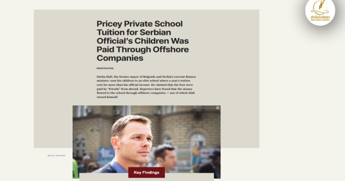 เอกสารหน่วยงานต่อต้านทุจริตเซอร์เบียระบุข้อมูลบริษัทนอกอาณาเขตที่จ่ายเงินค่าเทอมให้กับลูกของนายมาลี
