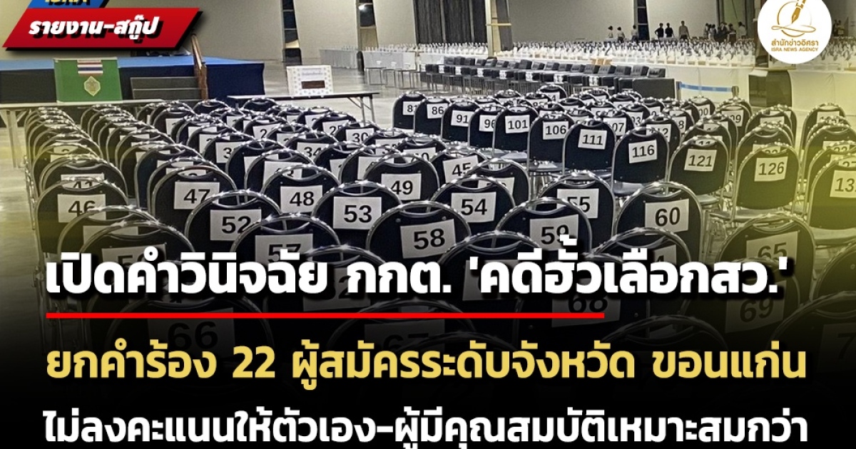 หมายเหตุ : สำนักข่าวอิศรา (www.isranews.org) รายงานว่า เมื่อเร็วๆนี้ คณะกรรมการการเลือกตั้ง (กกต.) มีคำวินิจฉัย กกต.ที่ 132/2568 เรื่อง การเลือกตั้งสมาชิกวุฒิสภา (สว.) ระดับจังหวัด จังหวัดขอนแก่น ลงนามโดย นายอิทธิพร บุญประคอง ประธาน กกต. ยกคำร้องผู้สมัครรับเลือก สว.จังหวัดขอนแก่น (ผู้ถูกร้อง) จำนวน 22 ราย หลังจากมีผู้ร้องว่า กระทำอันเป็นการฝ่าฝืนพระราชบัญญัติประกอบรัฐธรรมนูญว่าด้วยการได้มาซึ่งสมาชิกวุฒิสภา พ.ศ. 2561 โดยมีเนื้อหารายละเอียดของคำวินิจฉัย ดังต่อไปนี้