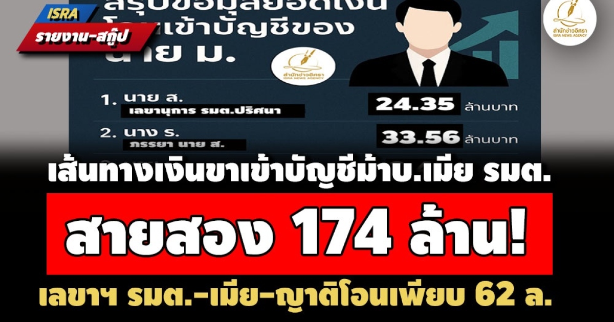 2. นาง ร. ภรรยา นาย ส. เลขานุกการรัฐมนตรี โอนเงินเข้ามา 33,555,000 บาท