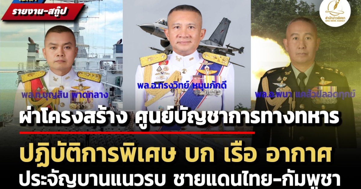 หมายเหตุ : สำนักข่าวอิศรา (www.isranews.org) พล.อ.ณัฐพล นาคพาณิชย์ รัฐมนตรีช่วยว่าการกระทรวงกลาโหม ในฐานะผู้อำนวยการศูนย์เฉพาะกิจบริหารสถานการณ์บริเวณชายแดนไทย-กัมพูชา (ศบ.ทก.) ประชุม ศบ.ทก. มอบอำนาจให้ ศูนย์บัญชาการทางทหาร (ศบท.) ที่มีพล.อ.ทรงวิทย์ หนุนภักดี ผู้บัญชาการทหารสูงสุด (ผบ.ทสส.) เป็นผู้บัญชาการ ศบท. ปฏิบัติภารกิจป้องกันประเทศตามแนวชายแดนไทยกับกับพูชา เมื่อวันที่ 24 กรกฎาคม 2568