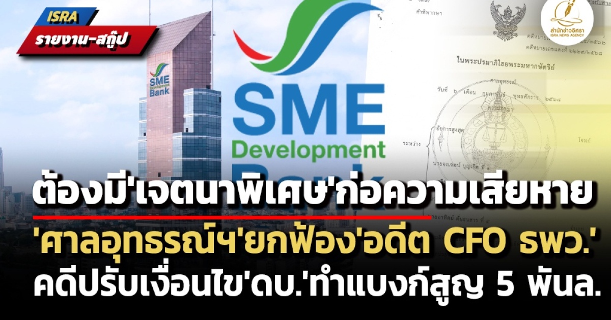 จากกรณีที่ ศาลอุทธรณ์แผนกคดีทุจริตและประพฤติมิชอบ ได้มีคำพิพากษาในคดีหมายเลขดำที่ อท 644/2566 คดีหมายเลขแดงที่ 2229/2568 โดยศาลอุทธรณ์ฯ พิพากษายกฟ้อง นายจงเจตน์ บุญเกิด อดีตประธานเจ้าหน้าที่การเงิน (CFO) ของธนาคารพัฒนาวิสาหกิจขนาดกลางและขนาดย่อมแห่งประเทศไทย (ธพว.) กับพวกรวม 4 ราย (จำเลยทั้ง 4)