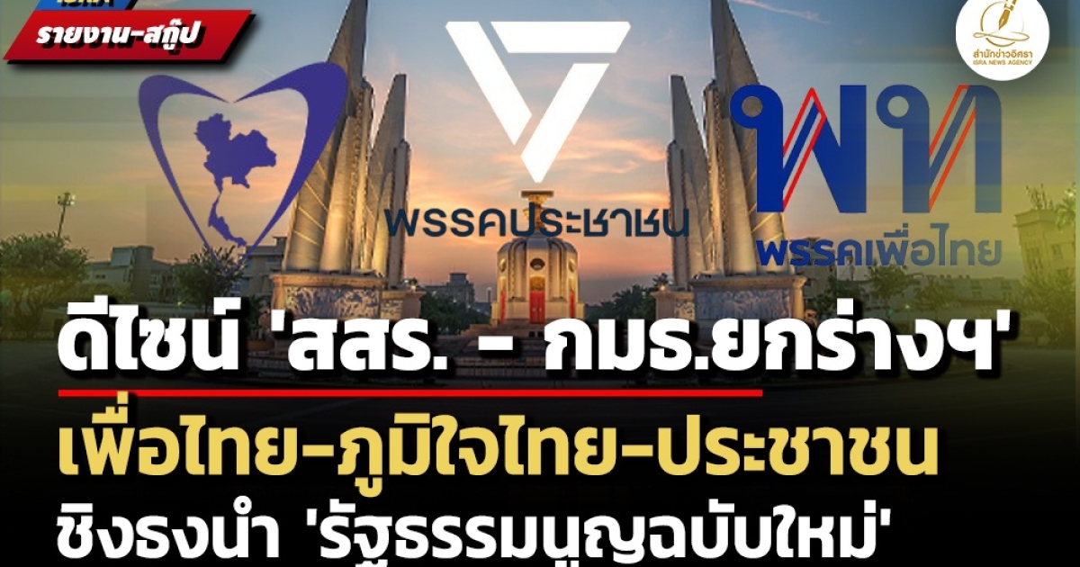 พรรคเพื่อไทย (พท.) – พรรคภูมิใจไทย (ภท.) – พรรคประชาชน (ปชน.) 3 พรรคการเมืองใหญ่ ที่ร่วมแรง-ร่วมใจกัน ‘ชิงธงนำ’ การแก้ไขรัฐธรรมนูญ โดยการแก้ไขเพิ่มเติมมาตรา 256 และเพิ่มหมวด 15/1 เพื่อจัดทำรัฐธรรมนูญฉบับใหม่