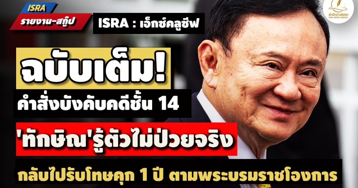 หมายเหตุ สำนักข่าวอิศรา (www.isranews.org) : สืบเนื่องจากเมื่อวันที่ 9 กันยายน 2568 ศาลฎีกาแผนกคดีอาญาของผู้ดํารงตําแหน่งทางการเมือง อ่านคําสั่งคดี หมายเลขดําที่ บค1/2568 กรณีศาลมีคําสั่งให้ไต่สวนว่า การบังคับโทษพันตํารวจโทหรือนายทักษิณ ชินวัตร จําเลย เป็นไปตามหมายจําคุกเมื่อคดีถึงที่สุดในคดีหมายเลขแดงที่ อม 4/2551 คดีหมายเลขแดงที่ อม 5/2551 และคดีหมายเลขแดง ที่ อม 10/2552 ของศาลฎีกาแผนกคดีอาญาของผู้ดํารงตําแหน่งทางการเมือง หรือไม่ โดยคดีนี้ศาลได้คำสั่งให้นายทักษิณกลับไปติดคุก 1 ปี ตามพระบรมราชโองการ เนื่องจากการบังคับโทษไม่ชอบด้วยกฎหมาย