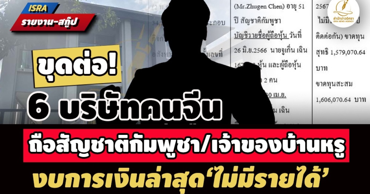 ตามอัปเดต 6 บริษัทกลุ่มทุนจีนคนสัญชาติ‘กัมพูชา’กก./หุ้นใหญ่/เจ้าของบ้านหรูหลังละหลายสิบล.ย่านหัวหมาก กรุงเทพฯ ยังไม่แจ้งเลิก ส่งงบฯปีล่าสุด ไม่มีรายได้ บางรายตั้งแต่ก่อตั้ง ขาดทุนต่อเนื่อง - 1 แห่งอยู่ในลิสต์ ปปง. คดี บ.เหลียน เซิง