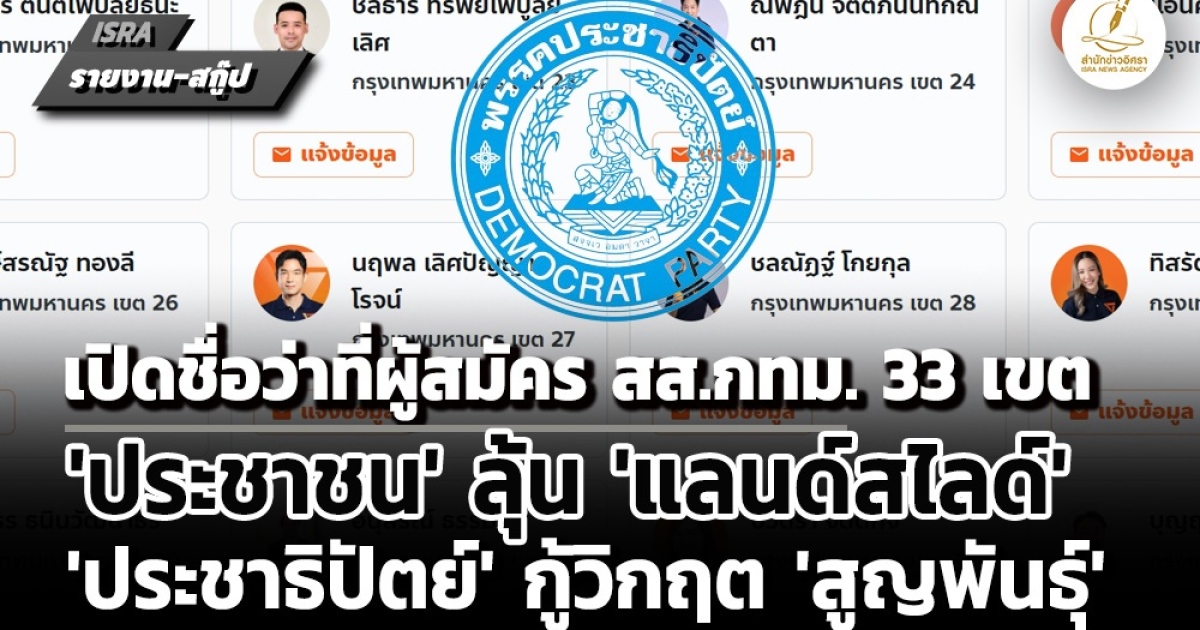 @ ว่าที่ผู้สมัคร สส.กทม. 33 เขต พรรคประชาธิปัตย์ @