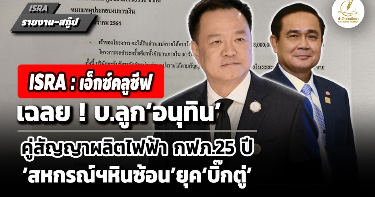 เจาะ บ.วัน พาวเวอร์ ลูก‘อนุทิน ชาญวีรกูล’ – คู่สัญญาซื้อขายไฟฟ้า กฟภ.ด้วย 25 ปี