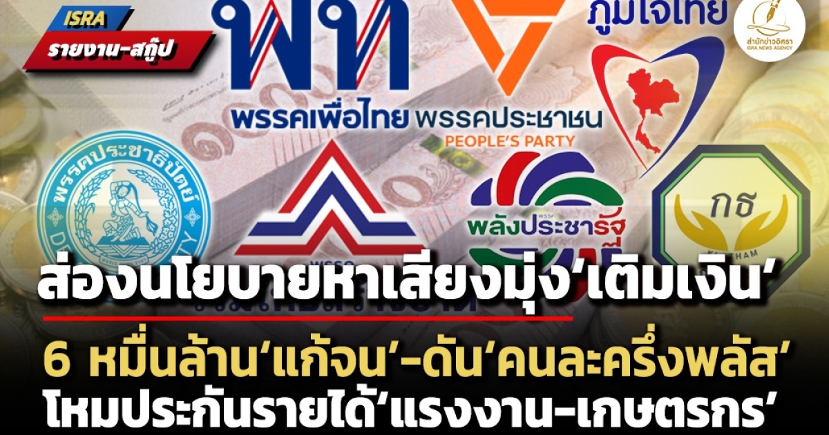 สำนักข่าวอิศรา (www.isranews.org) ได้รวบรวมและสรุปนโยบายหาเสียงของ ‘พรรคการเมือง’ ที่มีลักษณะเป็น ‘แจกเงิน’ ในรูปแบบต่างๆ รวมถึงแหล่งที่มาของเงินที่จะใช้ดำเนินการ มานำเสนอต่อสาธารณชน ดังนี้