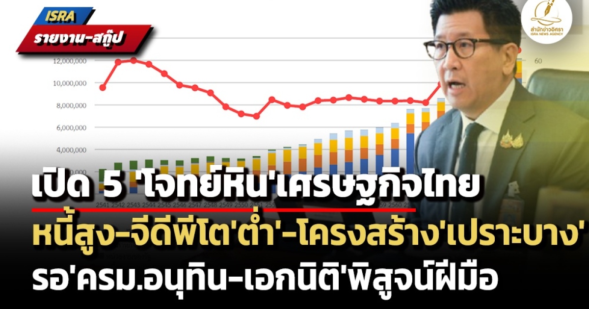 เหล่านี้เป็น ‘บริบท-สถานะ’ การพัฒนาประเทศประเทศไทย ในช่วงแผนพัฒนาเศรษฐกิจฯ ฉบับที่ 13 ในด้านการปรับโครงสร้างภาคการผลิตและบริการสู่เศรษฐกิจฐานนวัตกรรมฯ และถือเป็นโจทย์หินที่รอให้ ‘ทีมเศรษฐกิจ’ ของรัฐบาล 'อนุทิน ชาญวีรกูล' 2 ที่มี 'เอกนิติ นิติทัณฑ์ประภาศ' เป็นแกนหลัก พิสูจน์ฝีมือ โดยเฉพาะการเร่งปรับโครงสร้างเศรษฐกิจไทย ตลอดจนการฟื้นขีดความสามารถในการแข่งขันของประเทศให้กลับคืนมา!
