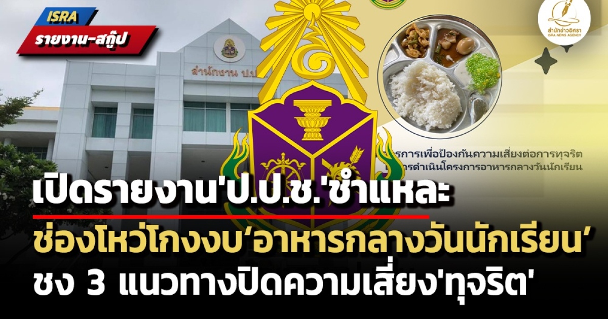สำนักข่าวอิศรา (www.isranews.org) จึงขอนำเสนอรายละเอียดเกี่ยวกับรายงาน ‘มาตรการเพื่อป้องกันความเสี่ยงต่อการทุจริตในการดำเนินโครงการอาหารกลางวันนักเรียน’ ของ ป.ป.ช. ดังนี้