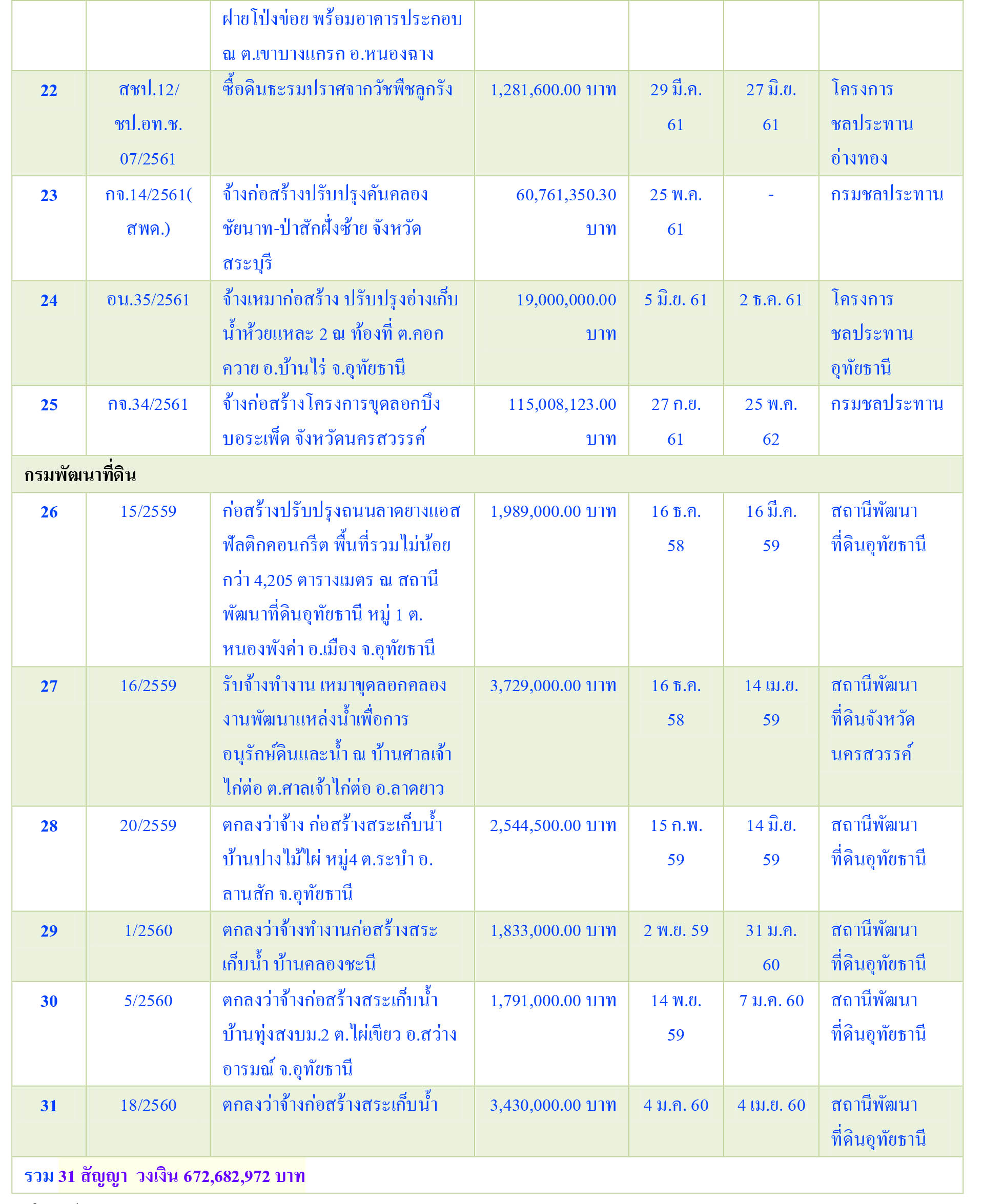 กรมทรัพยากรน้ำ และ กรมทรัพยากรน้ำบาดาล รวม 78 สัญญา 459,025,345 บาท (ดูตารางประกอบท้ายเรื่อง)