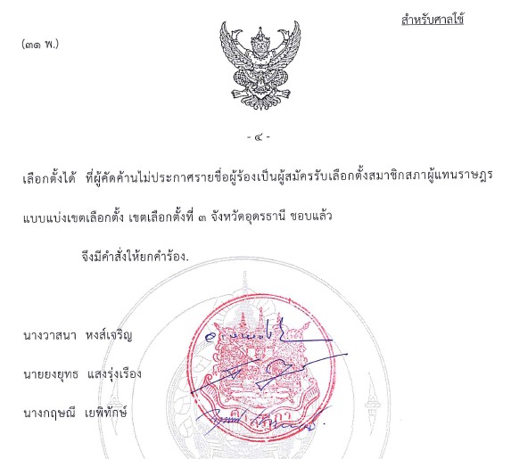 คำพิพากษาศาลฎีกาที่ 1322/1562 วันที่ 8 มี.ค.2562 ระหว่าง นายรวิพล หินผาย ผู้ร้อง ผู้อำนวยการการเลือกตั้งประจำเขตเลือกตั้งที่ 3 จังหวัดอุดรธานี ผู้คัดค้าน
