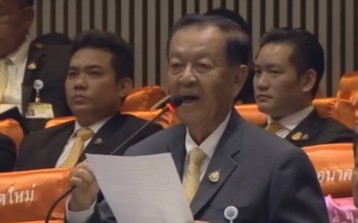 คนเคยทำรัฐประหารซ้ำซาก อย่างน้อยก็ 2 ครั้งแล้วบอกว่ายึดในระบอบประชาธิปไตยได้อย่างไร คนที่ยึดมั่นในระบอบประชาธิปไตย ต้องเคารพต่อรัฐสภา ต่อประชาชน และต้องยึดมั่นในรัฐธรรมนูญ ท่านนายกฯที่จะเป็นผู้นำรัฐบาล เขียนได้อย่างไรว่า ยึดมั่นในการปกครองประชาธิปไตย เขียนได้ เขียนดี และต้องเขียน แต่สิ่งที่บอกว่าไม่เชื่อมั่นผู้ปฏิบัติ เพราะท่านทำรัฐประหาร ประชาธิปไตยอย่างไร และฉีกรัฐธรรมนูญ ความจริงข้อกฎหมายฉีกรัฐธรรมนูญก็ผิดอย่างแรงอยู่แล้ว ก็ขบถอยู่แล้ว