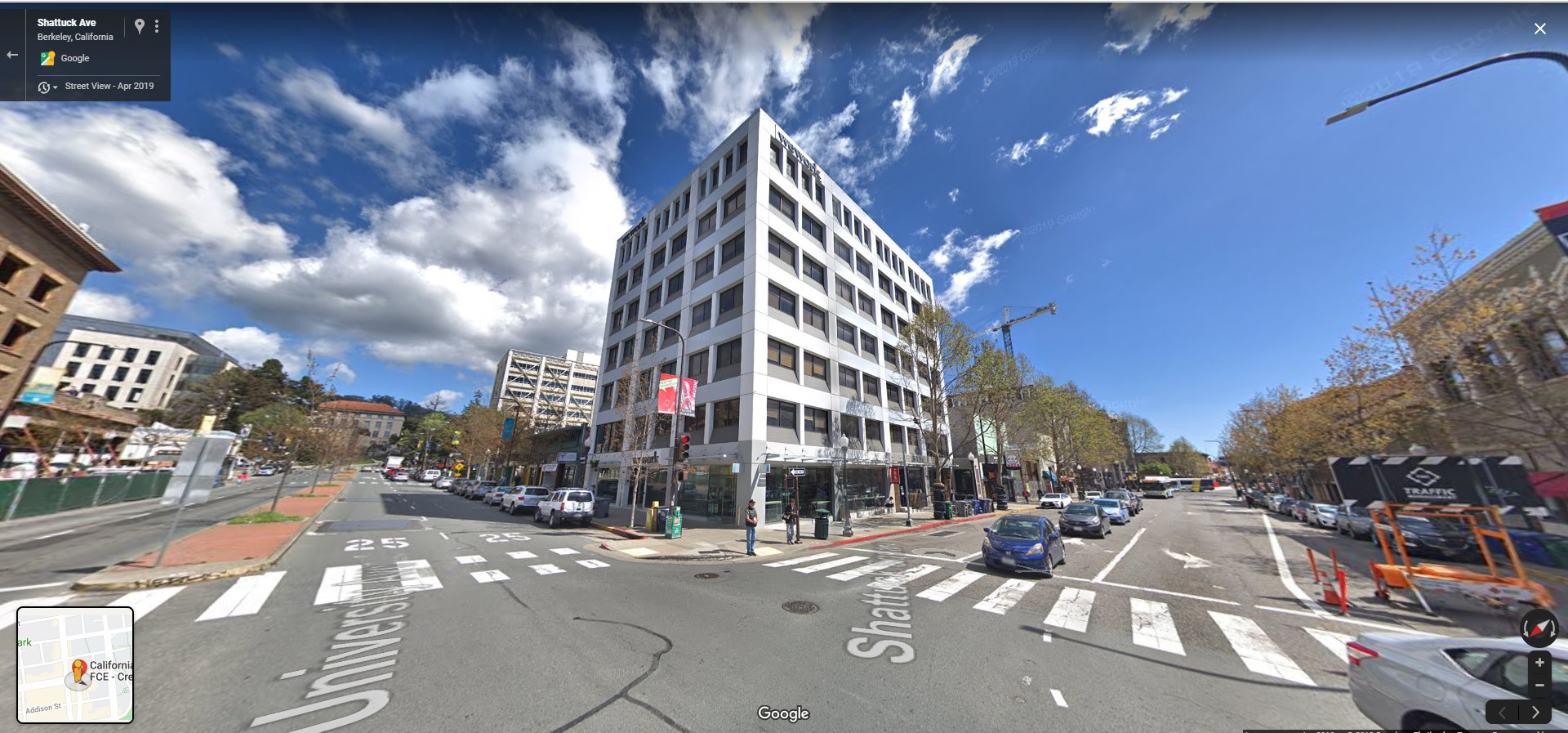 เมื่อสำนักข่าวอิศรา ใช้เครื่องมือ Google Street View ตรวจสอบที่อยู่ของมหาวิทยาลัยเพิ่มเติม คาดว่าที่ตั้งอาคารจะอยู่ที่ตึกหัวมุมระหว่าง Shattuck Avenue กับ University Avenue ปรากฎตามรูปภาพดังต่อไปนี้