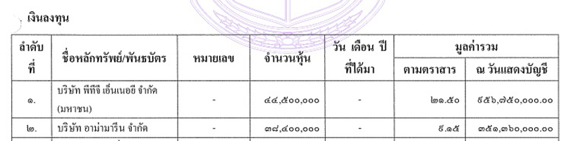 ในส่วนของเงินลงทุนที่เพิ่มขึ้นจำนวนมากในช่วง 2 เดือนที่ผ่านมา มีอย่างน้อย 2 รายการ ได้แก่