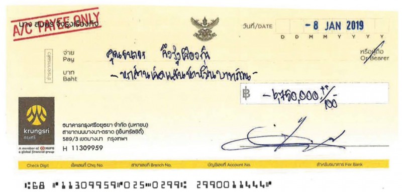 ขณะเดียวกัน ในเอกสารแนบท้ายหมายเลข (28) ระบุ “ใบฝากเช็คธนาคารกรุงศรีอยุธยา ของนายธนาธร จึงรุ่งเรืองกิจ เลขที่เช็ค 11309959 ลงวันที่ 16 พฤษภาคม 2562” (ดูเอกสาร)