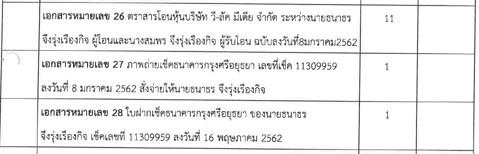 ข้อมูลดังกล่าวปรากฏอยู่ในเอกสารคำชี้แจงหน้า 55 ข้อ 3.3 ผู้ถูกร้องโอนหุ้นของบริษัท วี-ลัค มีเดีย จำกัด ตั้งแต่วันที่ 8 ม.ค.2562 ความว่า