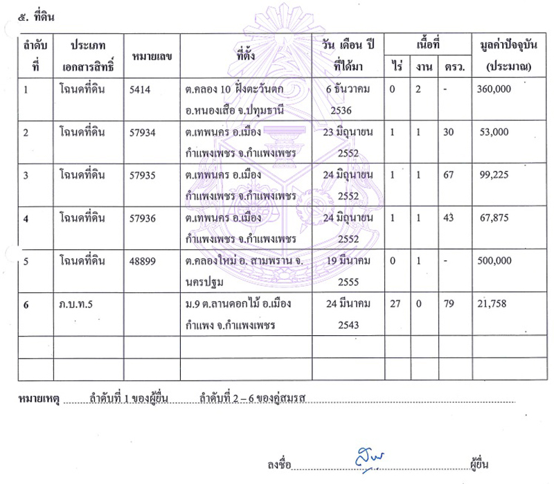 ‘ชินวรณ์’ยื่นบัญชีฯปี 54 ภ.บ.ท.5 - 4 แปลง 70 ไร่ ได้ มี.ค.50 ไฉน!ครั้งล่าสุดแจ้งปี 25-38