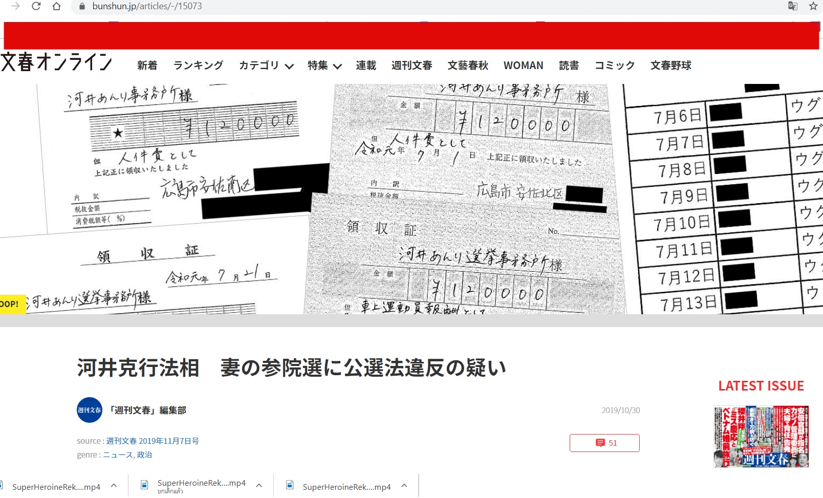 "...สำนักข่าว Japan Times ประเทศญี่ปุ่น รายงานข่าวว่า นายคัตซึยากิ คาวาอิ วัย 56 ปี ส.ส.ฮิโรชิม่า และอดีตรัฐมนตรีว่าการกระทรวงยุติธรรม และนางอันริ คาวาอิ วัย 46 ปี ภรรยา และยังดำรงตำแหน่งเป็น ส.ว.จากเมืองฮิโรชิม่า ประเทศญี่ปุ่น ถูกตั้งข้อหาว่าได้ดำเนินการซื้อเสียงผ่านการจ่ายเงินค่าล่วงเวลาให้กับผู้ช่วยซึ่งเป็นผู้หญิง 13 ราย เป็นจำนวนเงิน 30,000 เยน (8,280 บาท) ต่อวัน ต่อราย ซึ่งจำนวนเงินดังกล่าวเป็นจำนวนที่มากกว่ากฎหมายกำหนดถึง 2 เท่า ในช่วงเดือน ก.ค. 2562 ที่มีการเลือกตั้ง ส.ว.ทั่วประเทศญี่ปุ่น..."