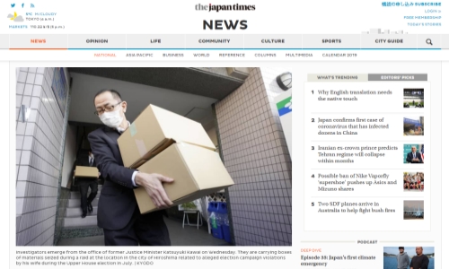 เรียบเรียงจาก:https://www.japantimes.co.jp/news/2020/01/16/national/ex-justice-minister-election-scandal/