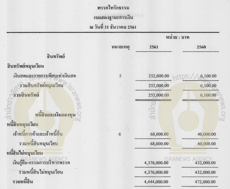 1.พรรคไทรักธรรม แจ้งหนี้สินในส่วนเงินกู้ยืม-กรรมการบริหารพรรคปี 2561 วงเงิน 4,376,000 บาท ส่วนปี 2560 วงเงิน 432,000 บาท