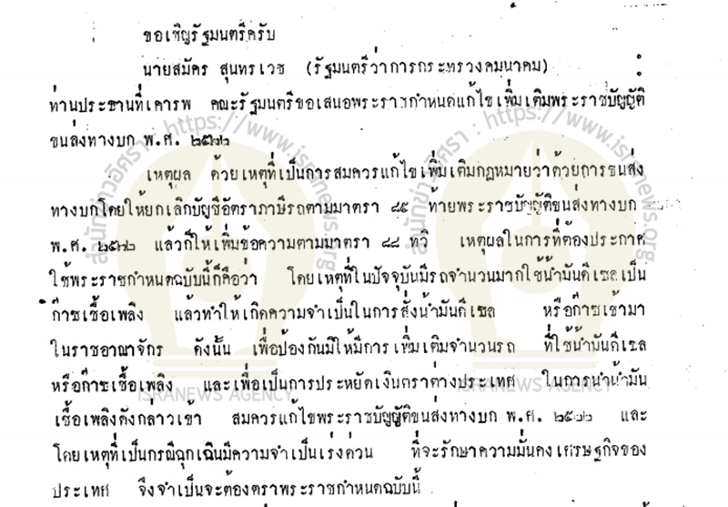 เหตุการณ์นี้เกิดขึ้นวันที่ 1 พ.ค.2529 ขณะที่ พล.อ.เปรม ดำรงตำแหน่งนายกฯ สมัยที่ 2 ‘สมัคร สุนทรเวช’ รมว.คมนาคมในขณะนั้น เสนอ พ.ร.ก.การขนส่งทางบก เพิ่มอัตราจัดเก็บภาษีเครื่องยนต์ที่ใช้น้ำมันดีเซล ให้สภาฯพิจารณา โดยให้เหตุผลว่า มีความเร่งด่วนในการรักษาความมั่นคงทางเศรษฐกิจของประเทศ