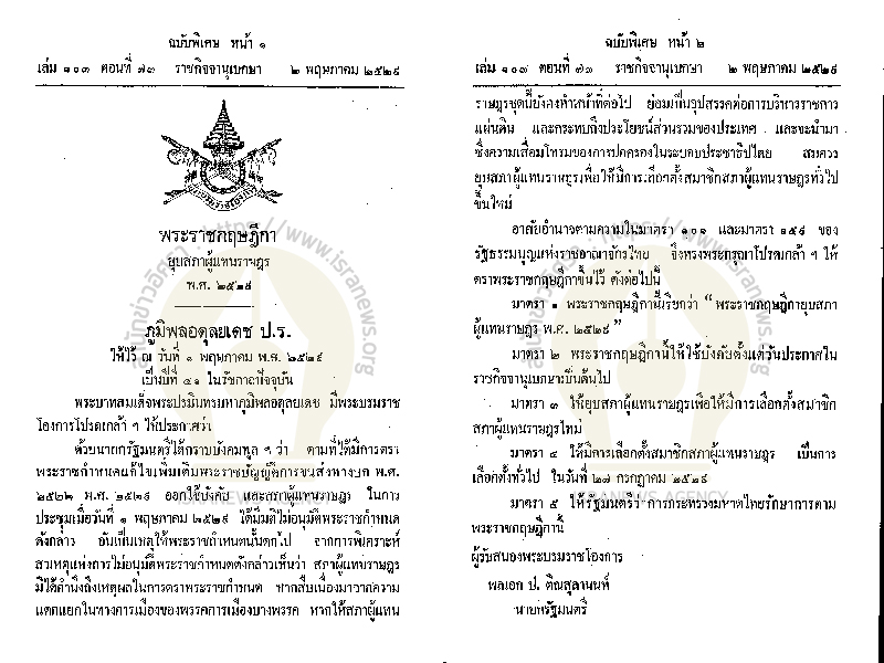 (พระราชกฤษฎีกายุบสภา 1 พ.ค.2529)