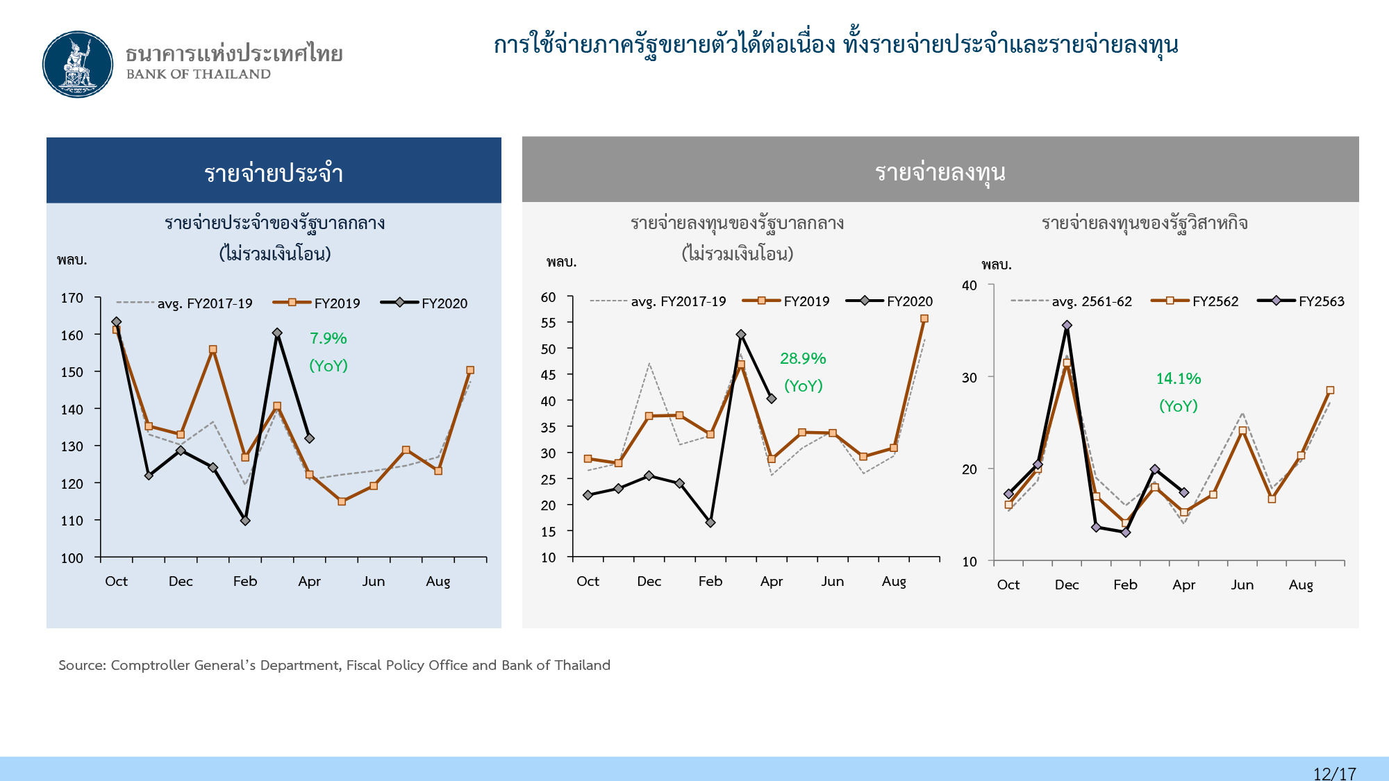 แต่สำหรับเศรษฐกิจไทยยามนี้ จะพบว่า ‘เครื่องยนต์’ เพียงตัวเดียวที่ทำหน้าที่ ‘พยุง’ เศรษฐกิจไม่ให้ดิ่งลึก ท่ามกลางการส่งออกที่ย่ำแย่ นักท่องเที่ยวต่างชาติเป็นศูนย์ การลงทุนเอกชนและการบริโภคเอกชนหดหาย นั่นก็คือ ‘การใช้จ่ายของภาครัฐ’ ผ่านทั้งเงินงบประมาณประจำปี และพ.ร.ก.เงินกู้ฯ 1 ล้านล้านบาท