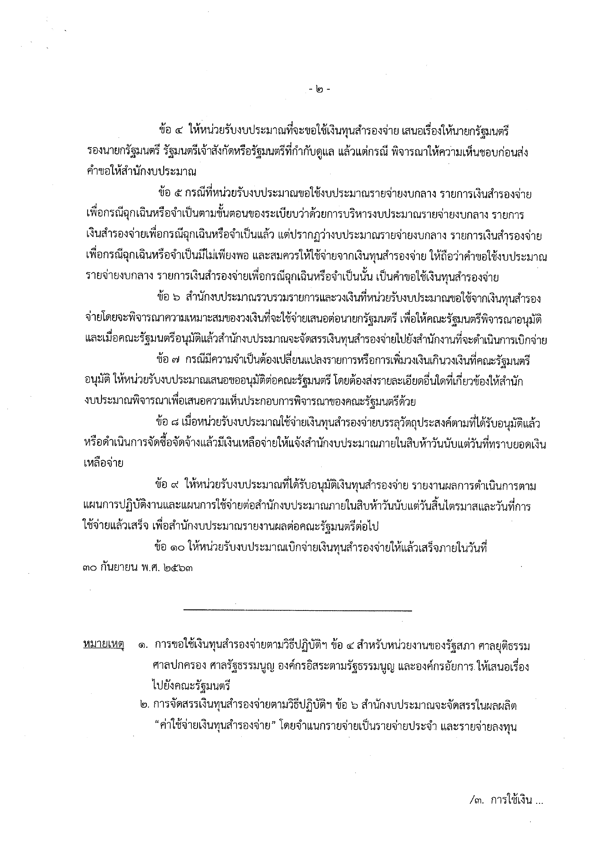 ทั้งนี้ ให้หน่วยรับงบประมาณเบิกจ่ายเงินทุนสำรองจ่ายให้แล้วเสร็จภายในวันที่ 30 ก.ย.2563