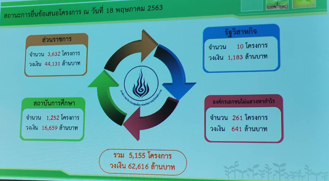 เพราะจากตัวเลขล่าสุดพบว่าหน่วยงานต่างๆเสนอโครงการเพื่อขอรับจัดสรรเงินจากกองทุนฯแล้ว 5,155 โครงการ คิดเป็นมูลค่า 62,616 ล้านบาทนั้น 'สูงกว่า' กรอบวงเงินที่จัดสรรในปีงบ 63 ซึ่งตั้งไว้ 5,600 ล้านบาท ถึง 11 เท่าตัว เลยทีเดียว