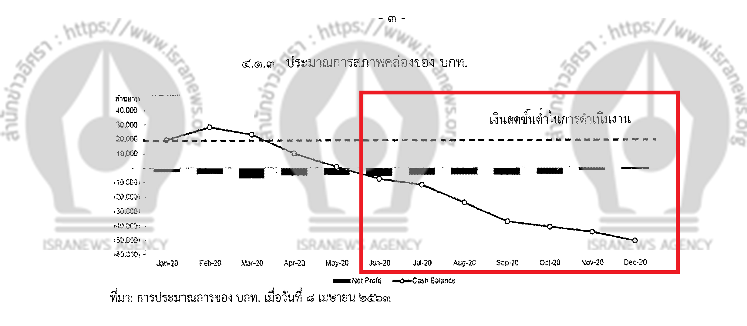 อย่างไรก็ตาม บริษัทฯ ยังคงมีภาระค่าใช้จ่ายที่ ‘ไม่สามารถลดได้’ ประมาณเดือนละ 5,000-6,000 ล้านบาท และจากการประมาณการคาดว่า หากบริษัทฯไม่ได้รับความช่วยเหลือสภาพคล่อง เงินสดของบริษัทฯ จะไม่เพียงพอในเดือนมิ.ย.63 ซึ่งบริษัทฯอยู่ระหว่างเจรจากับเจ้าหนี้ หากเจรจาสำเร็จจะทำให้บริษัทฯสามารถดำรงสภาพคล่องได้มากกว่าประมาณการ