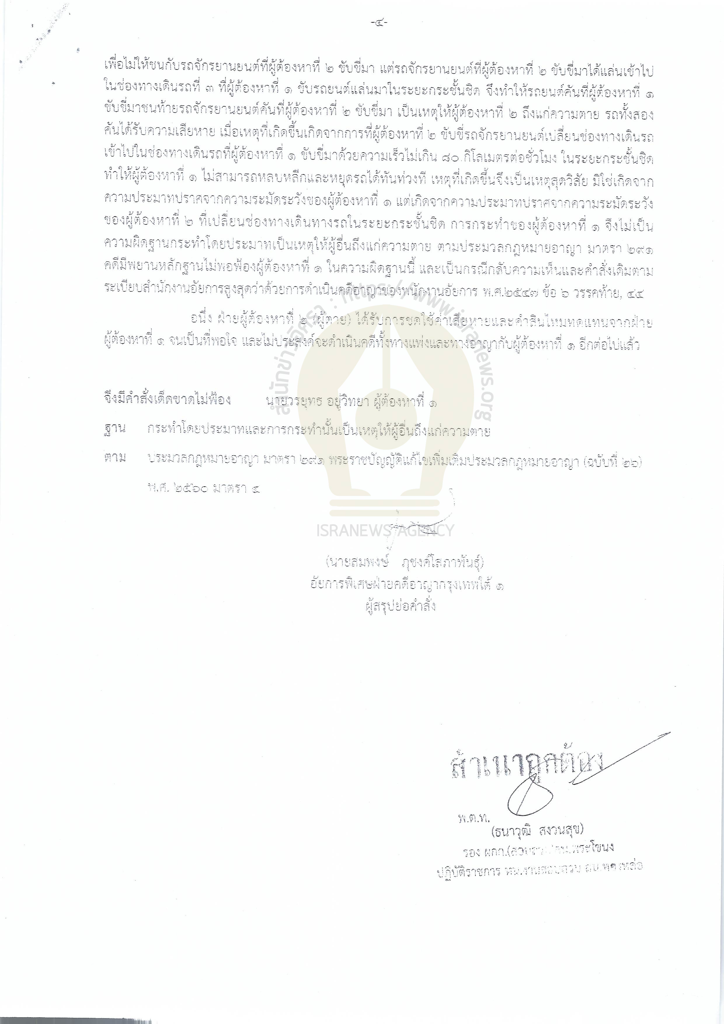 5.อัยการยุติการดำเนินคดี ข้อหาขับรถก่อให้เกิดความเสียหายแก่บุคคลและทรัพย์สินของผู้อื่นฯ