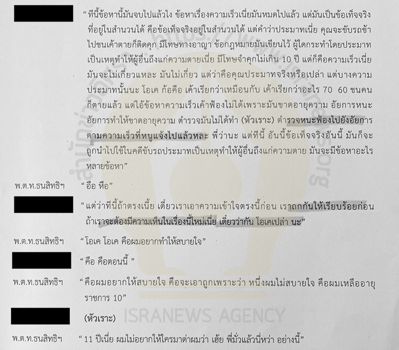 (เอกสารบันทึกบทสนทนาระหว่าง บิ๊กสีกากี กับ พ.ต.อ.ธนสิทธิ แตงจั่น)