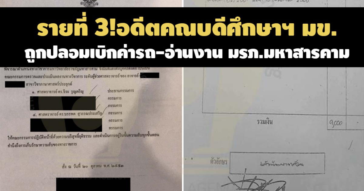 (อ่านประกอบ: เขียนชื่อยังผิด! เปิดข้อมูล อ.รายที่ 2 จาก 'มข.' โดนปลอมลายเซ็นตั้งกก.ประเมินงานวิชาการ, เทียบชัดๆ ลายเซ็นปลอมชื่อตั้งกก.ประเมินงานวิชาการ มรภ.สารคาม-ใช้เบิกค่าน้ำมันรถด้วย)