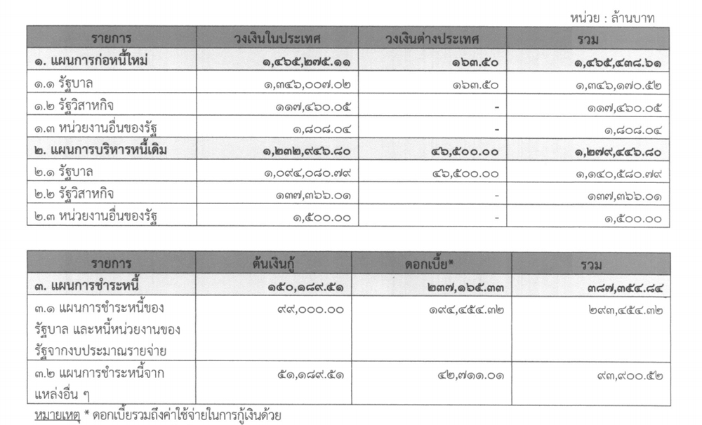 แผนการก่อหนี้ใหม่ วงเงินรวม 1,465,438.61 ล้านบาท ได้แก่