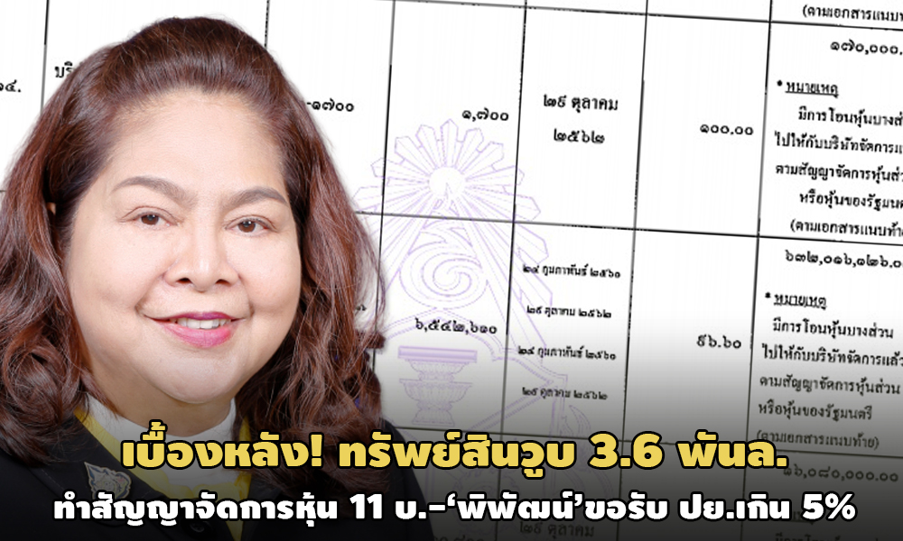 ไขเบื้องหลัง! ทรัพย์สิน ‘นาที-รมต.พิพัฒน์’ วูบลงกว่า 3.6 พันล้าน เหตุทำสัญญาจัดการหุ้นส่วน รมต. โอนให้ บลจ.ภัทรฯ ดำเนินการแทน 11 บริษัท ขอรับประโยชน์เกิน 5%