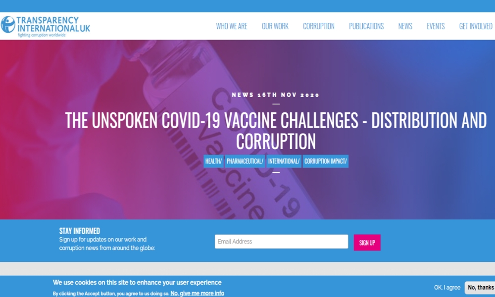 เมื่อเร็วๆ นี้ องค์กรเพื่อความโปร่งใสนานาชาติ (Transparency International) ประจำประเทศอังกฤษ ได้เผยแพร่บทความชื่อว่า THE UNSPOKEN COVID-19 VACCINE CHALLENGES - DISTRIBUTION AND CORRUPTION หรือแปลเป็นไทยว่าความท้าทายของวัคซีนโควิด-19 ที่ไม่เคยถูกพูดถึง กับปัญหาเรื่องการแจกจ่ายและการทุจริต