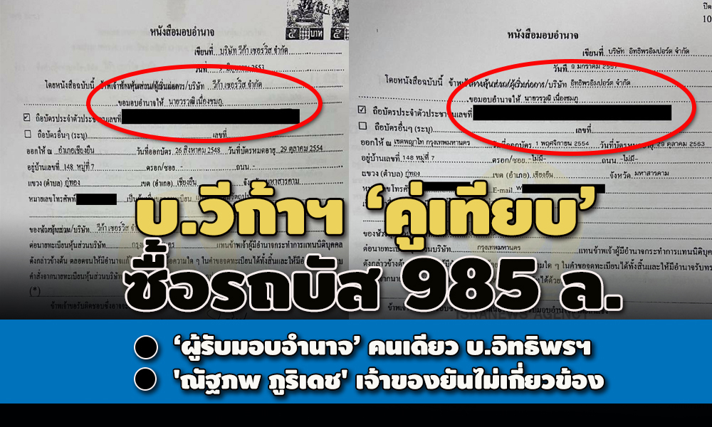 บ.วีก้าฯ คู่เทียบประกวดราคาจัดซื้อรถโดยสารขนาดใหญ่ ปรับอากาศ ปี งบฯ 58 -165 คัน 985 ล. ขส.ทบ. ทุน 200 ล. ซื้อขาย ให้เช่า รถยก ช่วงปี 2553 ใช้‘ผู้รับมอบอำนาจ’จดทะเบียนคนเดียว บ.อิทธิพรฯ ผู้ชนะ ด้าน 'ณัฐภพ ภูริเดช' เจ้าของ ยันทำธุรกิจโปร่งใส จดวัตถุประสงค์ทำธุรกิจหลายด้าน ไม่มีส่วนเกี่ยวข้อง บ.อิทธิพรฯ