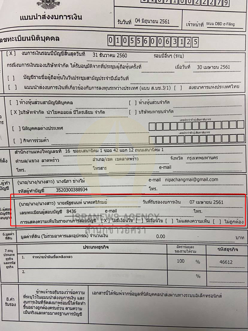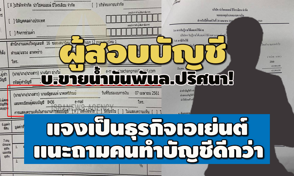 เปิดข้อมูล 2 ผู้สอบบัญชี บ.นำโชคออยล์ ฯ ขายน้ำมันพันล.ปริศนา! รายแรกลงชื่อรับรองงบการเงินรอบปี 2560 วันที่ 7 เม.ย.2561 ต่อมาถูกขีดเป็นบริษัทร้าง เจ้าตัวแจงข้อมูลเป็นบริษัททำธุรกิจเอเย่นต์ซื้อมาขายไป มีรายได้พันล้านแต่กำไรไม่ถึง หลักฐานปกติไม่พบข้อพิรุธ แนะให้ถาม สนง.คนทำบัญชีดีกว่า-สรรพากร ยังไม่ได้เรียกตัวไปให้ข้อมูล