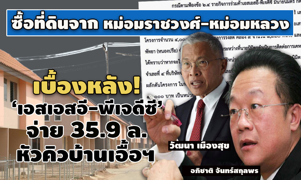 ซื้อที่ดินจากหม่อมราชวงศ์ ทรงเทวัญ - หม่อมหลวงกนิษฐา เทวกุล ! คดีบ้านเอื้ออาทรรายกิจการร่วมค้าเอสเอสอี-พีเจดีซี จ่ายหัวคิว 35.9 ล้าน แลก 4,000 หน่วย 2 โครงการ รังสิต คลอง 9 –พัทยา เบื้องหลังเจรจาต่อรองยูนิตละ 10,000 เหลือ 9,000 บาท โอนไปโอนมาหลายตลบ