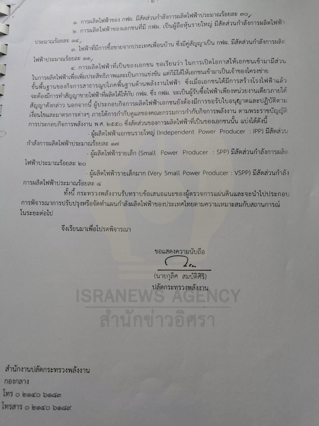 ต่อมา กุลิศ สมบัติศิริ ปลัดกระทรวงพลังงาน ลงนามหนังสือกระทรวงพลังงาน หนังสือด่วนที่สุด ที่พน 0201/379 ลงวันที่ 6 ก.พ.2563 เรื่อง ชี้แจงกรณีคำวินิจฉัยผู้ตรวจการแผ่นดิน เรื่องร้องเรียนเลขแดงที่ 1030/2562