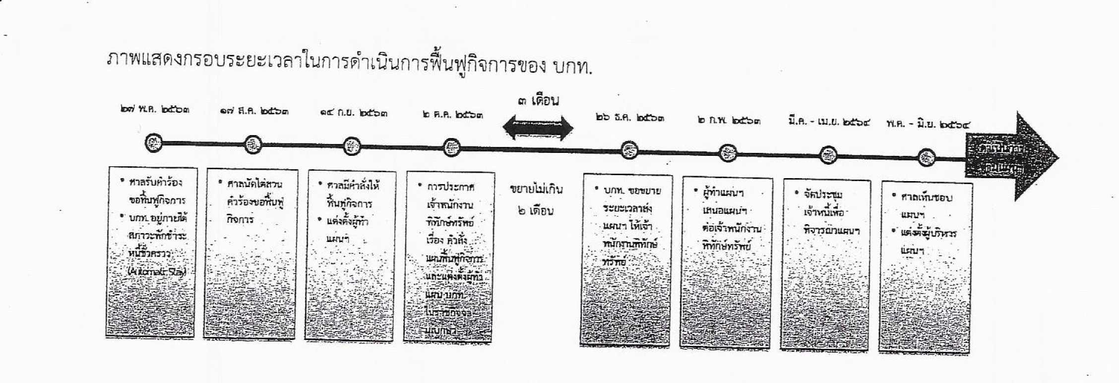 “…คณะผู้ทำแผนพื้นฟูกิจการ บกท. เชื่อว่า บกท. ยังมีจุดแข็งในหลายๆ ด้านและมีศักยภาพเพียงพอในการเติบโตในอนาคตหลังจากการพื้นฟูกิจการประสบผลสำเร็จ อย่างไรก็ดี ประเด็นสำคัญ ที่จะต้องเร่งสร้างความชัดเจนเพื่อประกอบการทำแผนพื้นฟูกิจการ บกท. ได้แก่ แผนการจัดหาเงินทุนและการแก้ไขปัญหาโครงสร้างทางการเงินของ บกท. ซึ่งปัจจุบันอยู่ระหว่างการพิจารณาหาแนวทางที่เหมาะสม…”